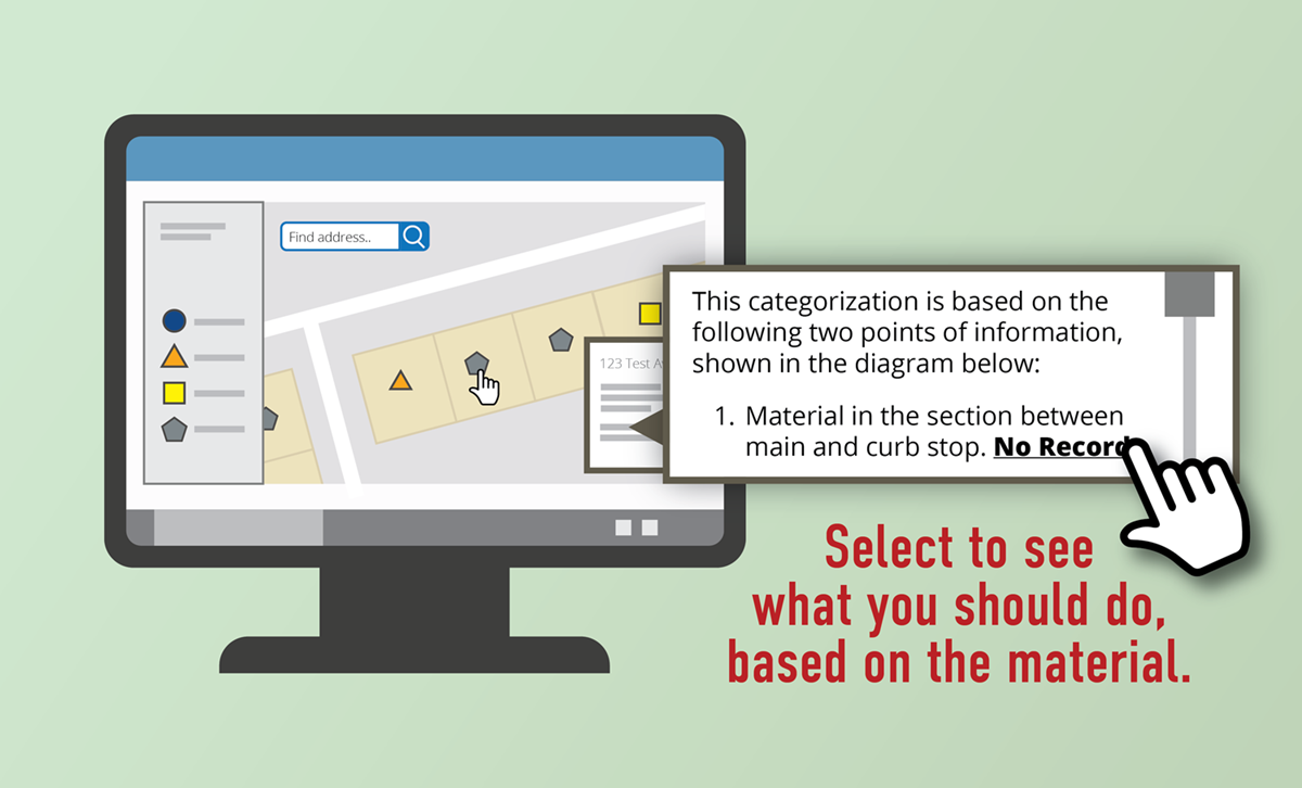- Residents and property owners should periodically check the map to see if there are updates for their property. We may reach out to some customers requesting to check a section of their service line. If we reach out, please participate so we can update your property’s records.