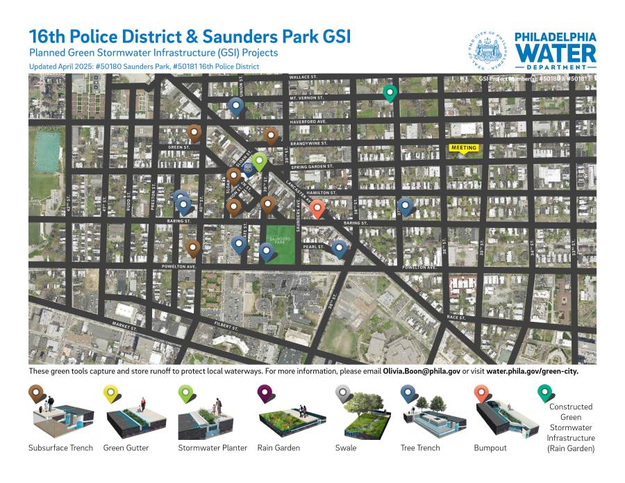 This project is part of the overall Green Infrastructure Initiative implemented by City of Philadelphia to improve the stormwater management in the Powelton Village neighborhood. It is a partnership project between PWD, Department of Public Property, and the Philadelphia Police Department.