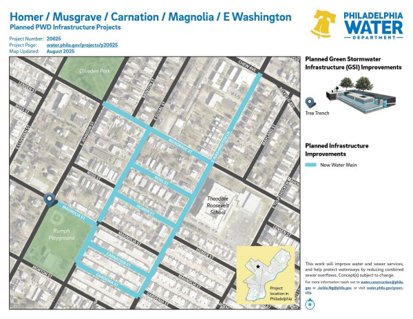 Homer / Musgrave / Carnation / Magnolia / E Washington Germantown, Northwest Philadelphia ZIP Code: 19138 Distribution Water MainsDrinking WaterGreen #20625