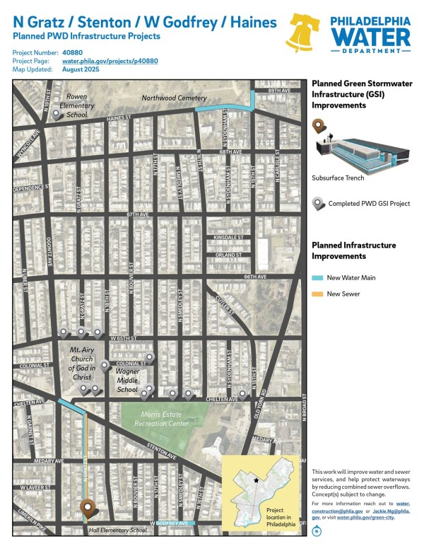N Gratz / Stenton / W Godfrey / Haines Mt Airy, Northwest Philadelphia Distribution Water MainsDrinking WaterGreenSewer #40880