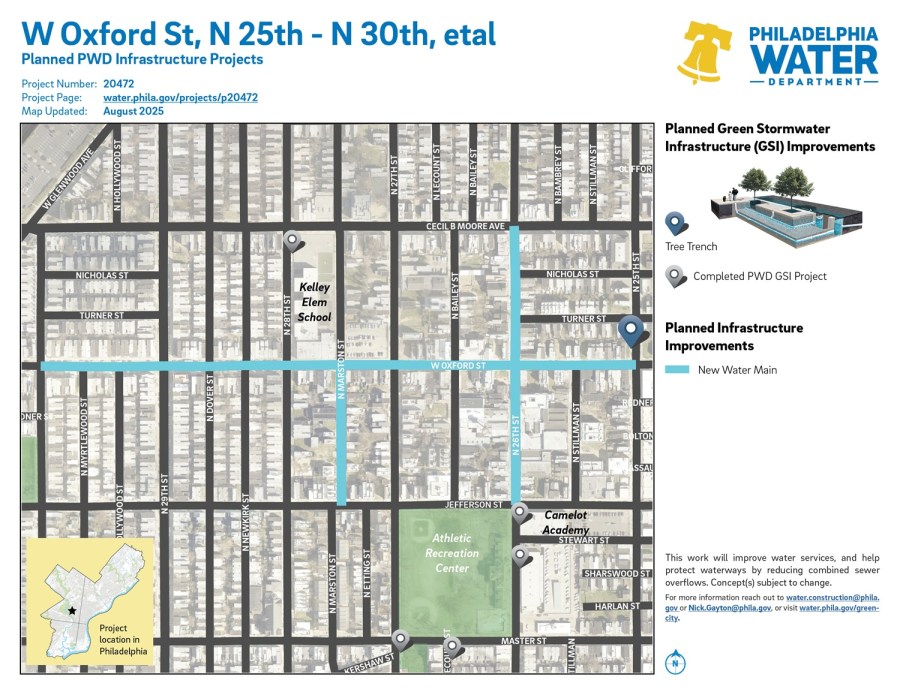 Project #20472 Oxford / 26th will replace water mains and install green stormwater infrastructure in the Brewerytown neighborhood.