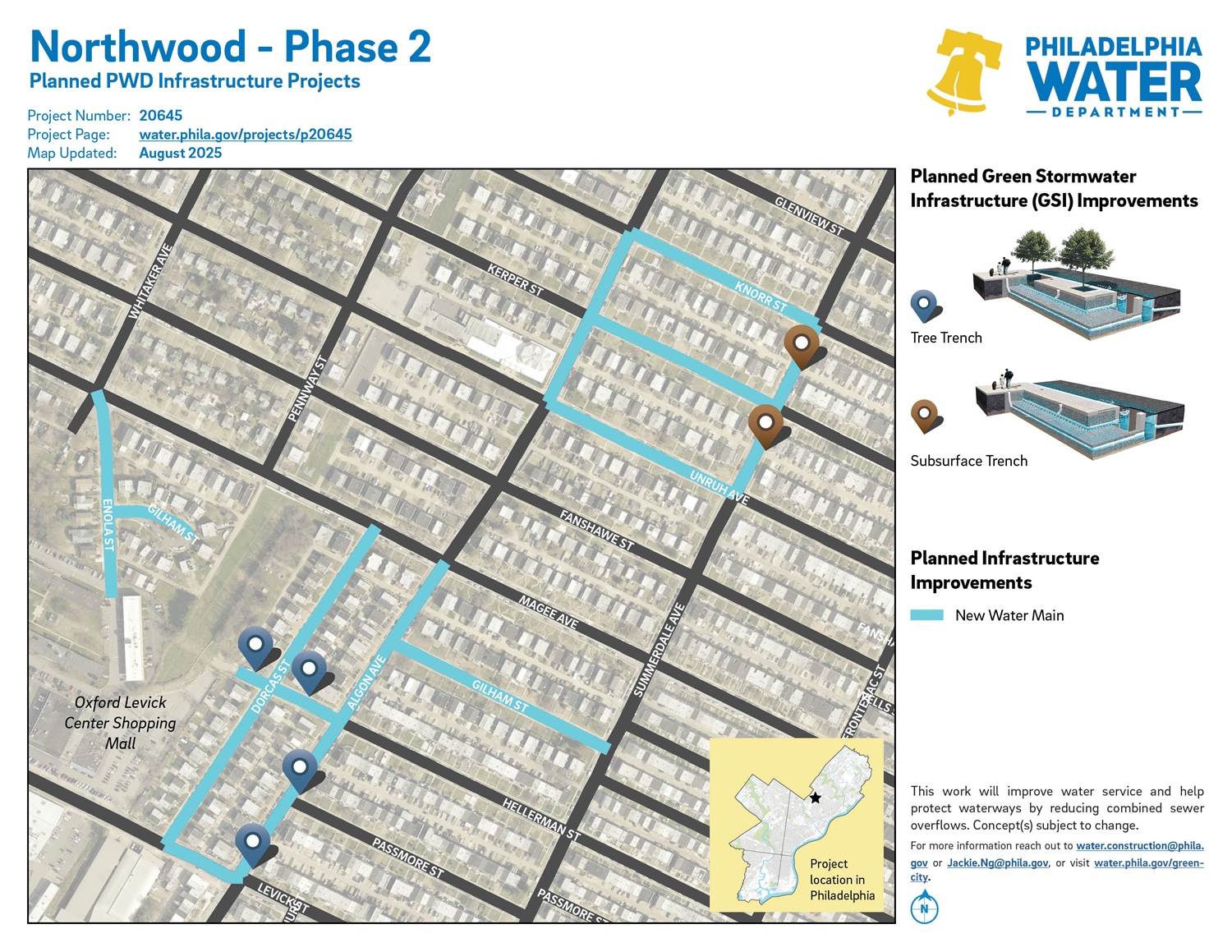 Project #20645 Northwood – Phase 2 is a planned PWD project in Northeast Philadelphia. It will build new water mains and green stormwater infrastructure.