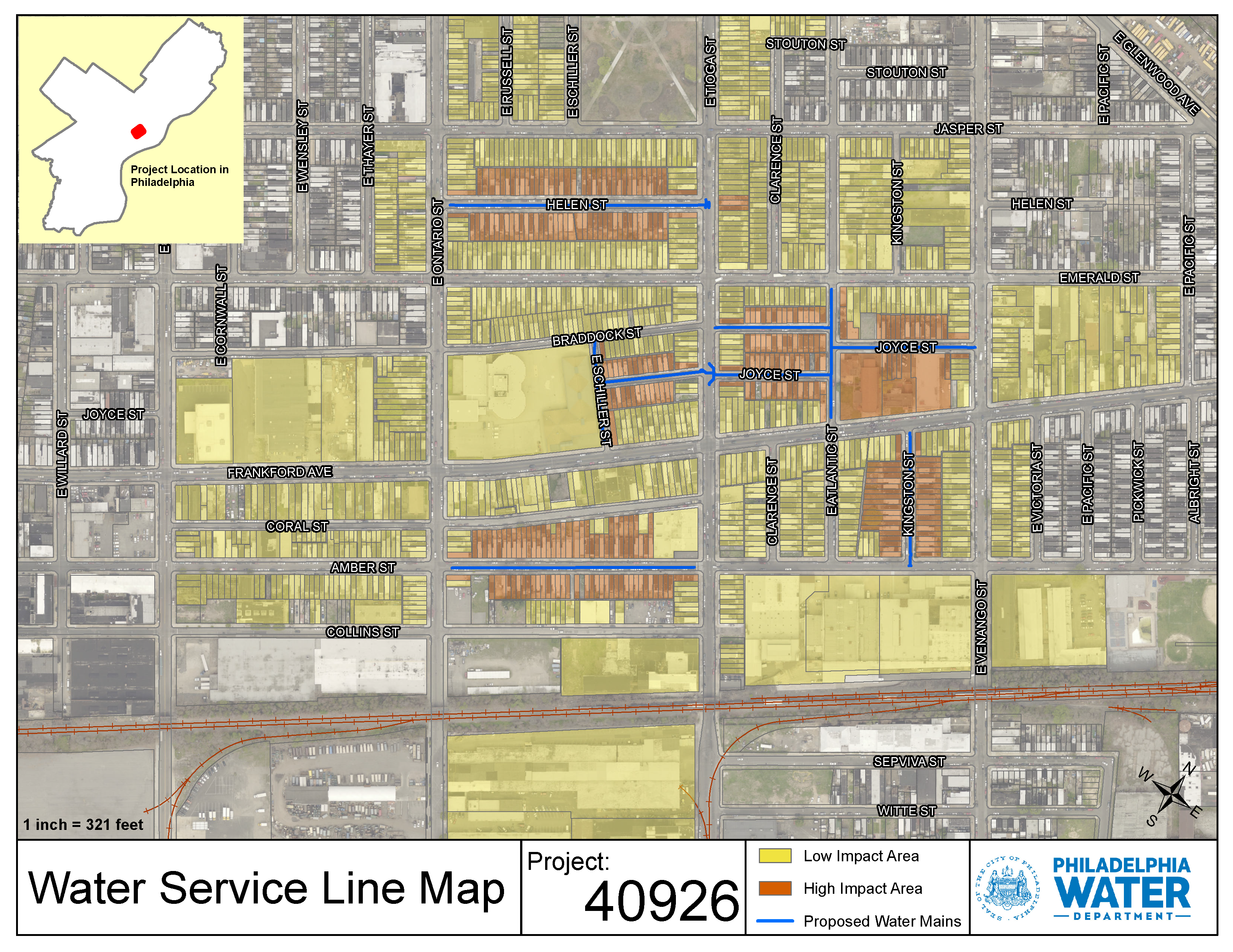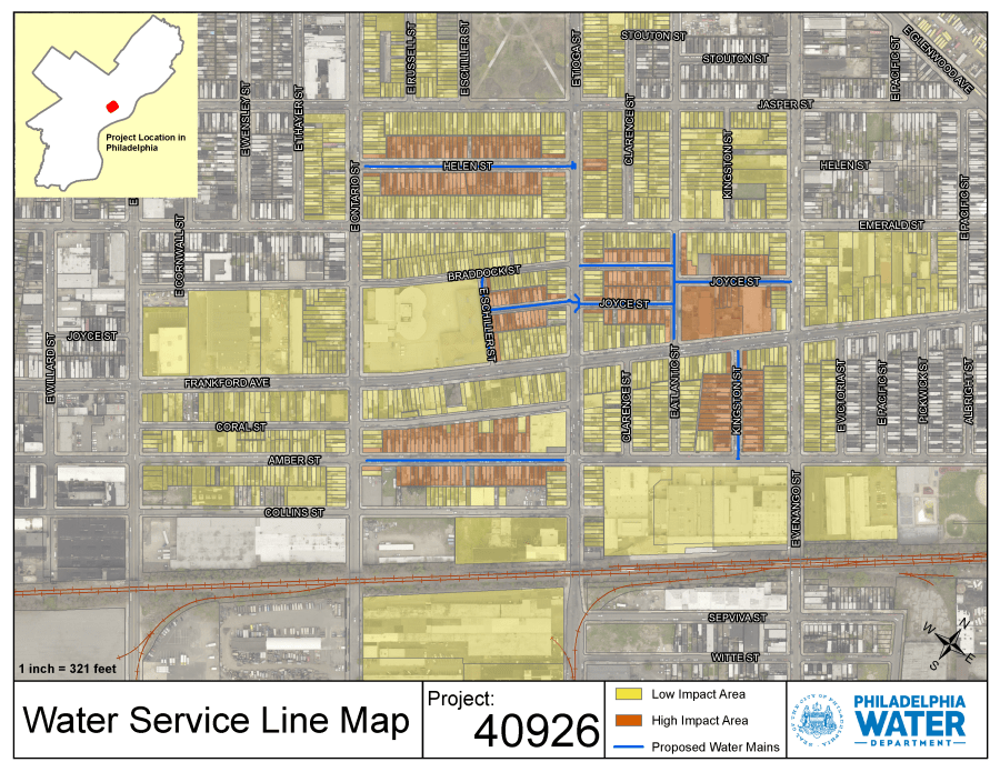 Project #40926 Braddock / Helen will replace water and sewer mains in the Harrowgate neighborhood of the River Wards section of Philadelphia.