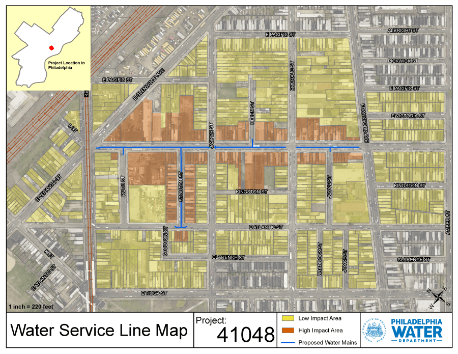 Project #41048 Venango / Stouton will replace water and sewer mains in the Harrowgate neighborhood of the Riverwards section of Philadelphia.