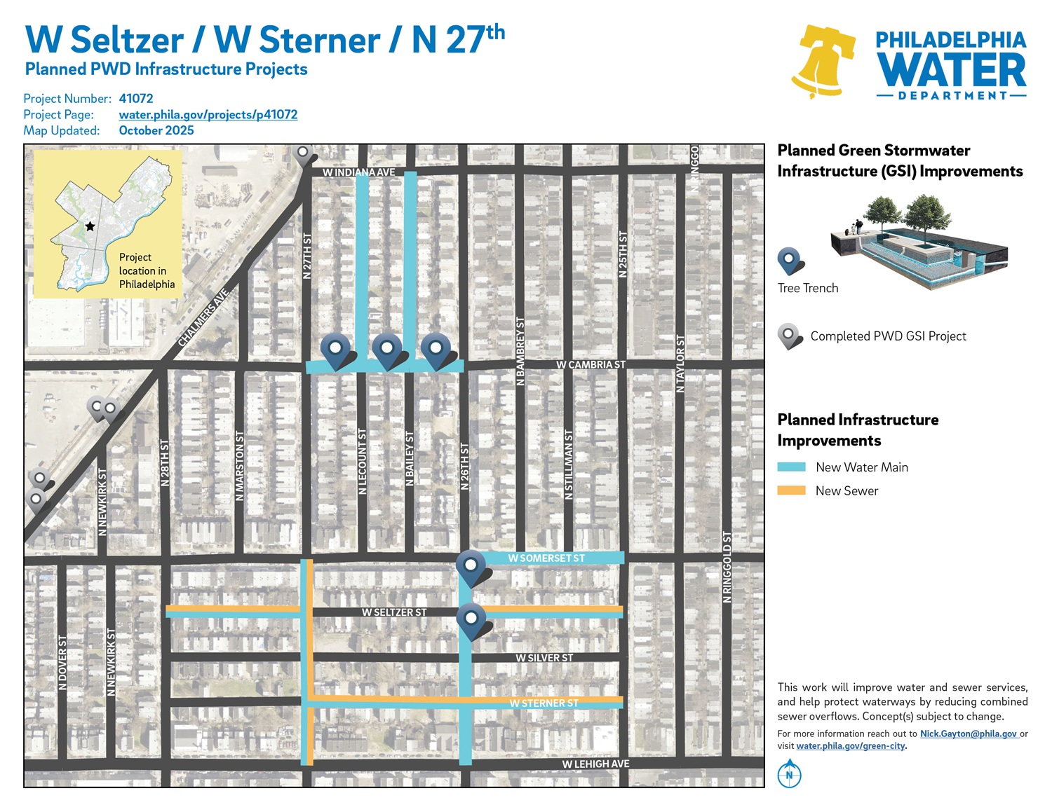 Project #41072 W Seltzer / W Sterner / N 27th will implement green stormwater management infrastructure tools in the Allegheny West neighborhood.