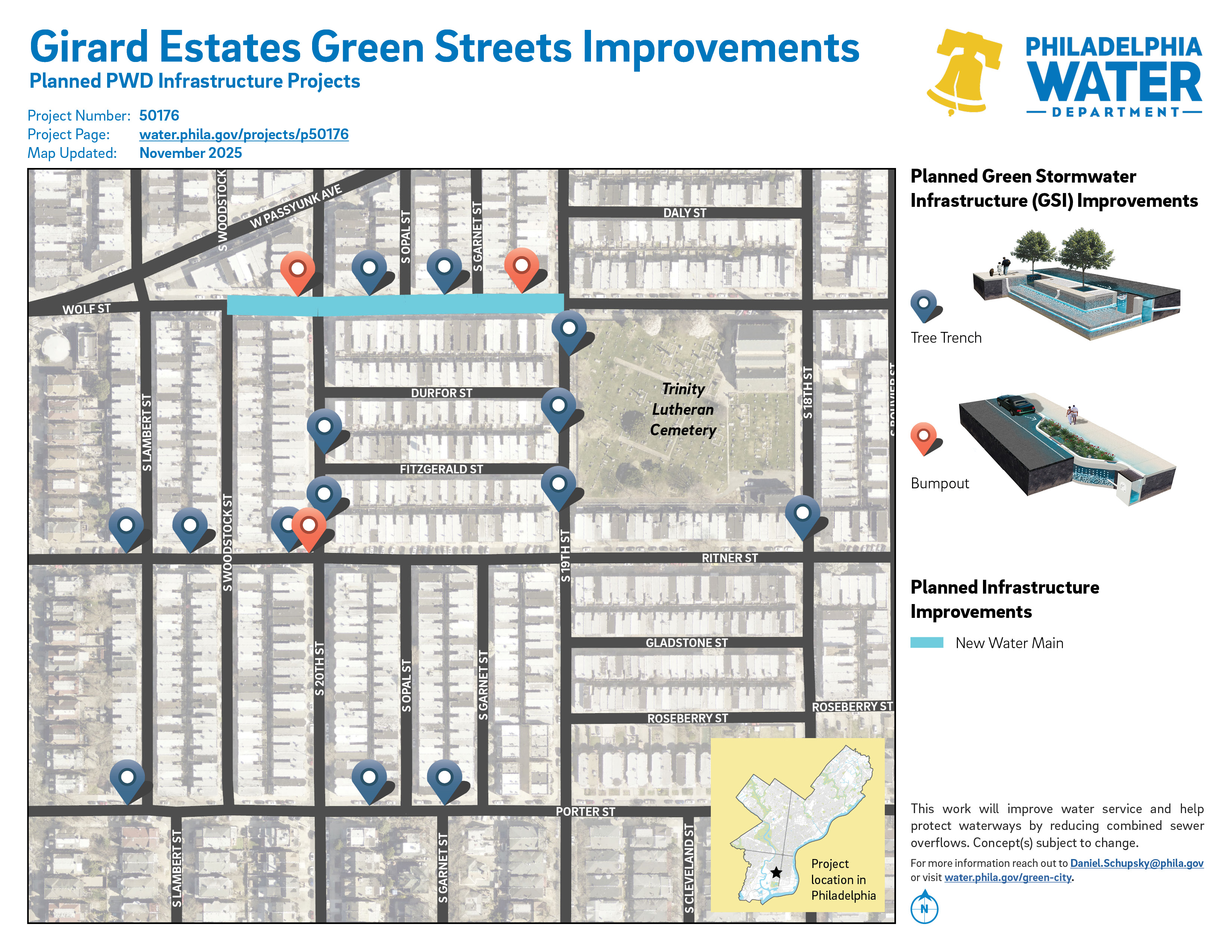 Project #50176 Girard Estates Green Streets will implement green stormwater management infrastructure tools in the Girard Estates neighborhood in South Philadelphia.