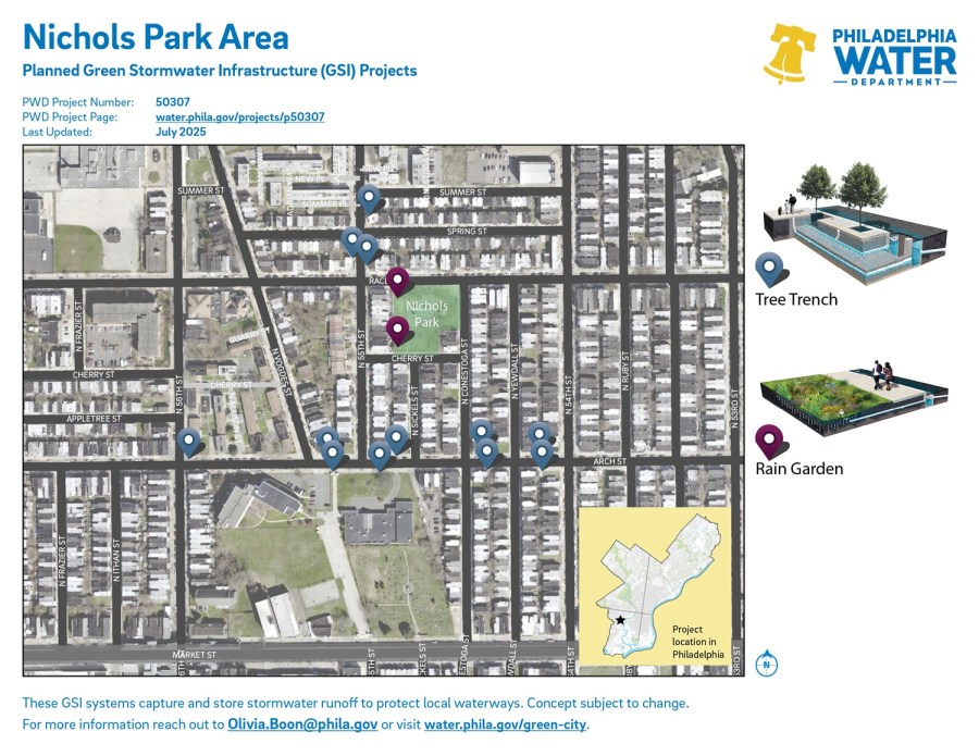 Project #50307 Nichols Park will implement green infrastructure to improve the stormwater management in the Haddington neighborhood of West Philadelphia.