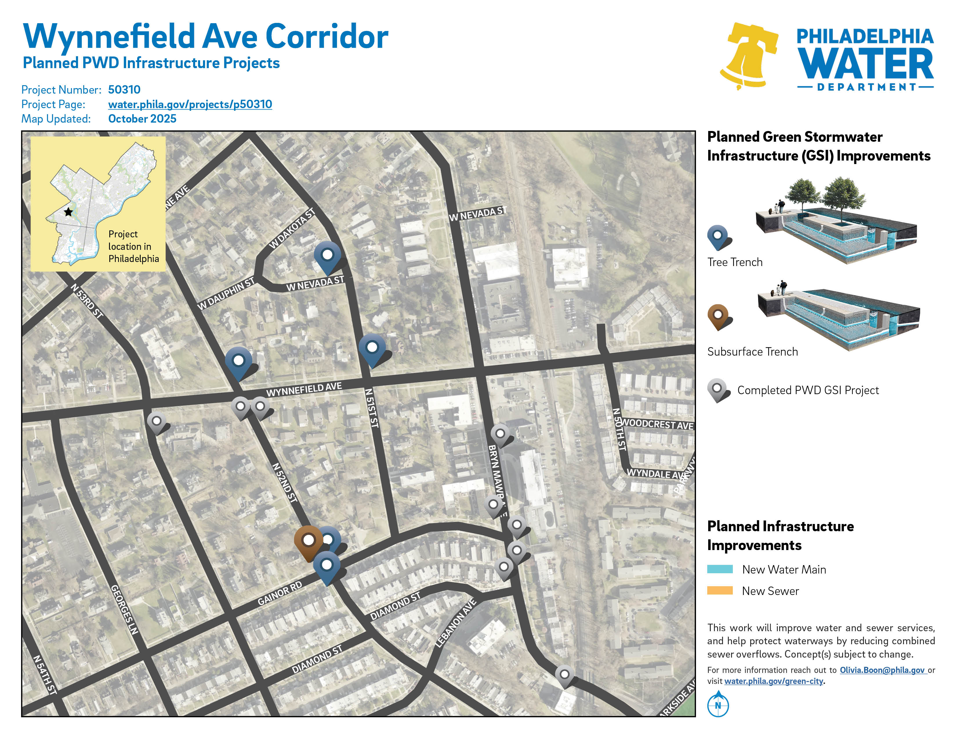 PWD Project #50310 Wynnefield Ave Corridor GSI is a planned PWD project in the Wynnefield neighborhood of West Philadelphia. It will build green stormwater infrastructure.