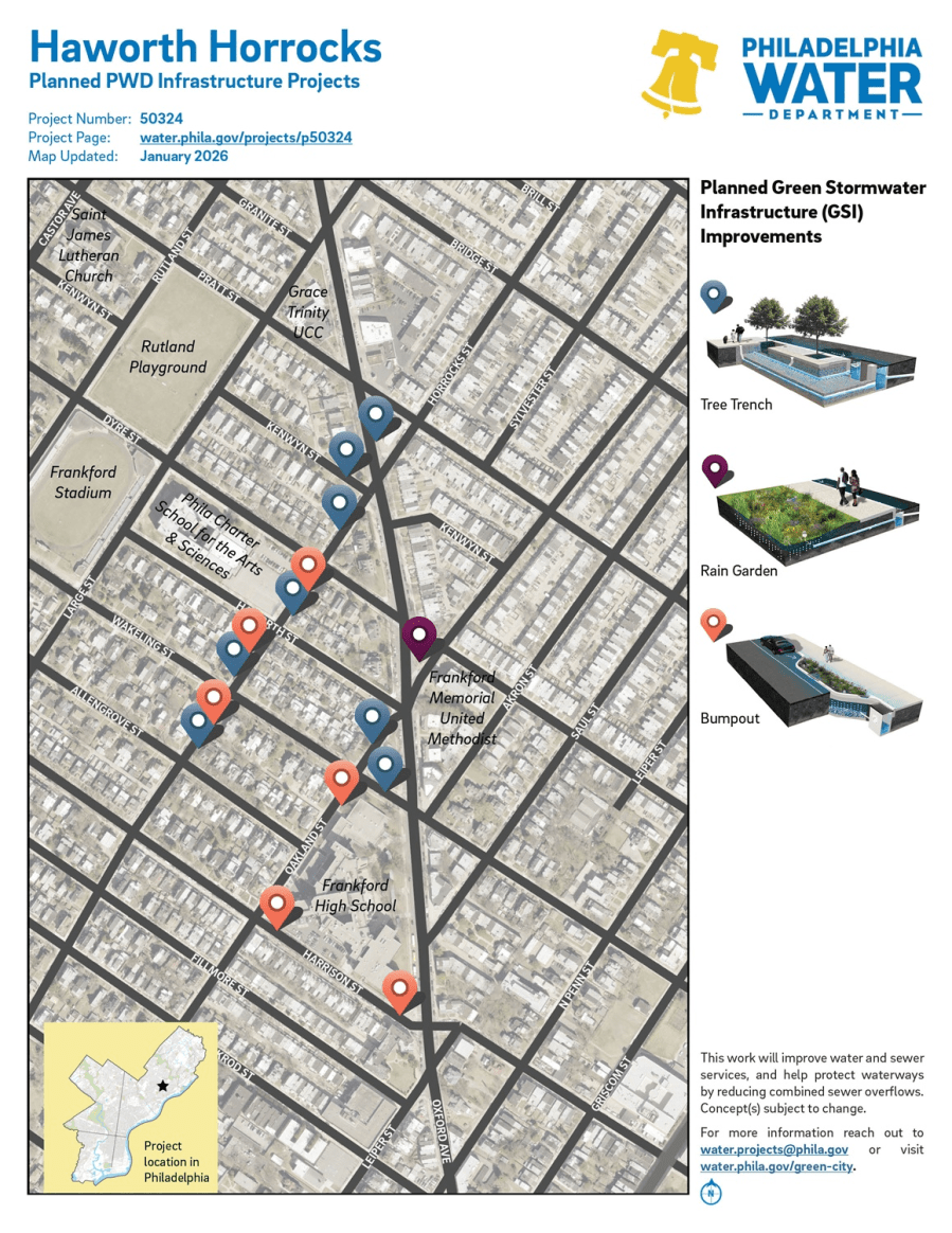 Project #50324 Haworth Horrocks will implement green infrastructure to improve the stormwater management in the Frankford neighborhood.
