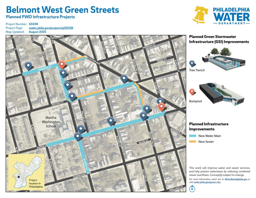 Project #50339 Belmont West Green Streets will implement green infrastructure to improve the stormwater management in the Mill Creek/West Belmont neighborhood of West Philadelphia.
