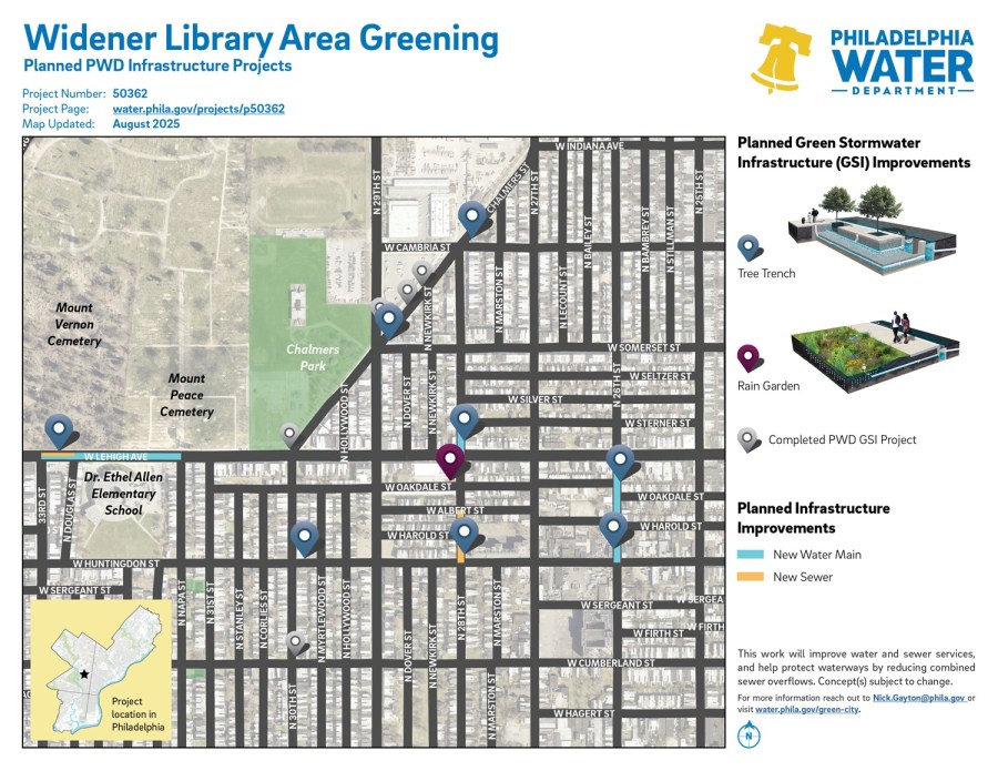 Project #50362 Widener Library Area Greening will implement green stormwater management infrastructure in the Allegheny West/Strawberry Mansion neighborhoods.