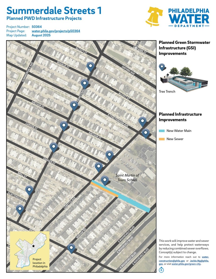 Project #50364 Summerdale Streets 1 will implement green stormwater management infrastructure tools in the Oxford Circle/Summerdale neighborhoods in Northeast Philadelphia.
