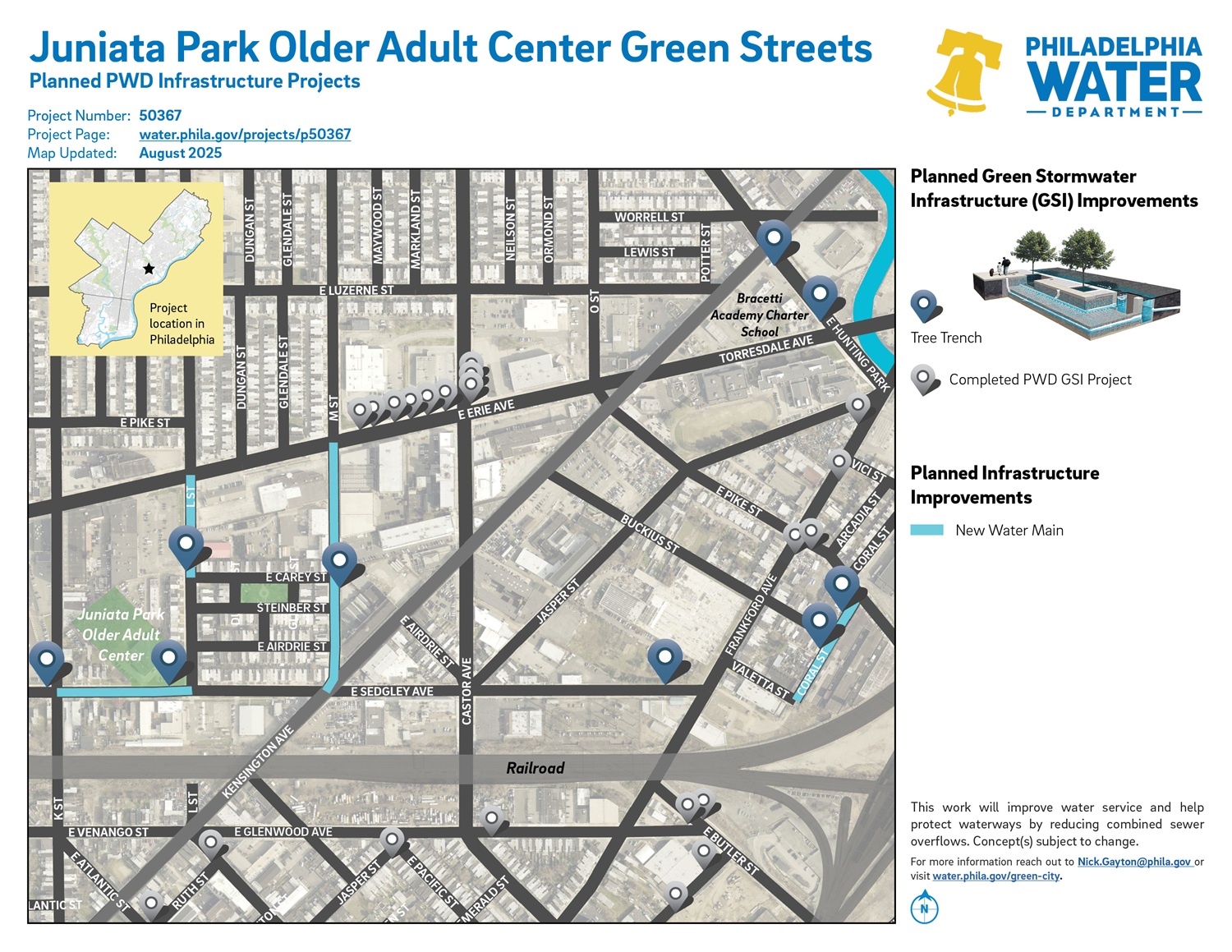 Project #50367 Juniata Park Older Adult Center Green Streets will build green stormwater management infrastructure in the Juniata Park neighborhood.