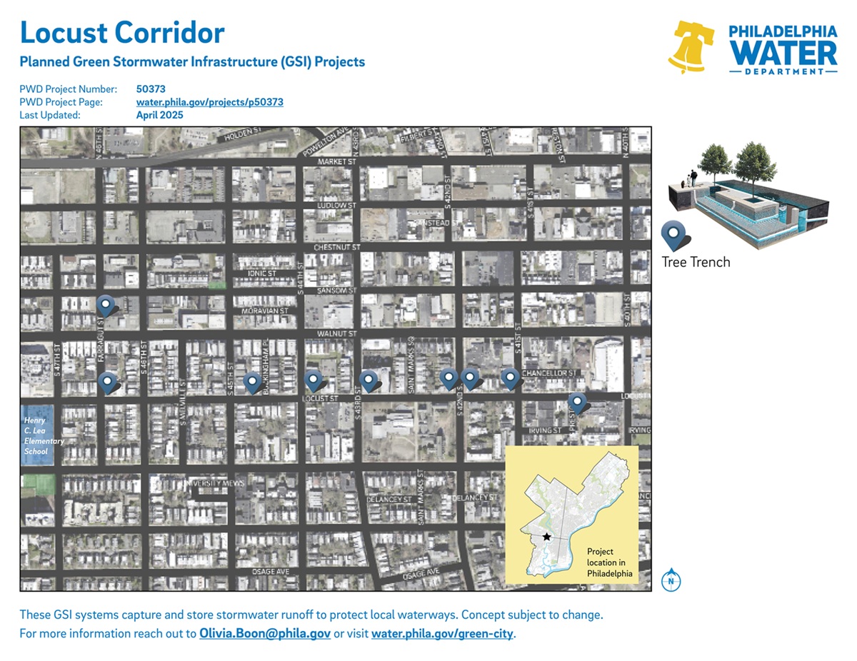 Project #50373 Locust Corridor will implement green infrastructure to improve the stormwater management in the Spruce Hill neighborhood of West Philadelphia.