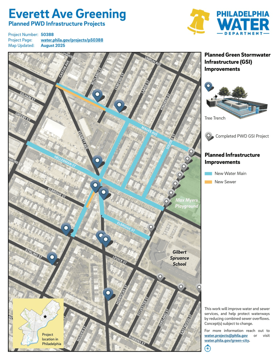 Project #50388 Everett Ave Greening will implement green infrastructure tools along Everett Ave to improve the stormwater management in the Oxford Circle neighborhood.