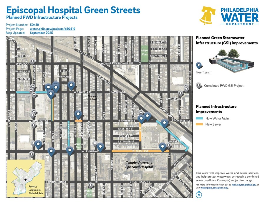 Project #50419 Episcopal Hospital Green Streets will build green stormwater infrastructure in the Fairhill neighborhood in North Philadelphia.