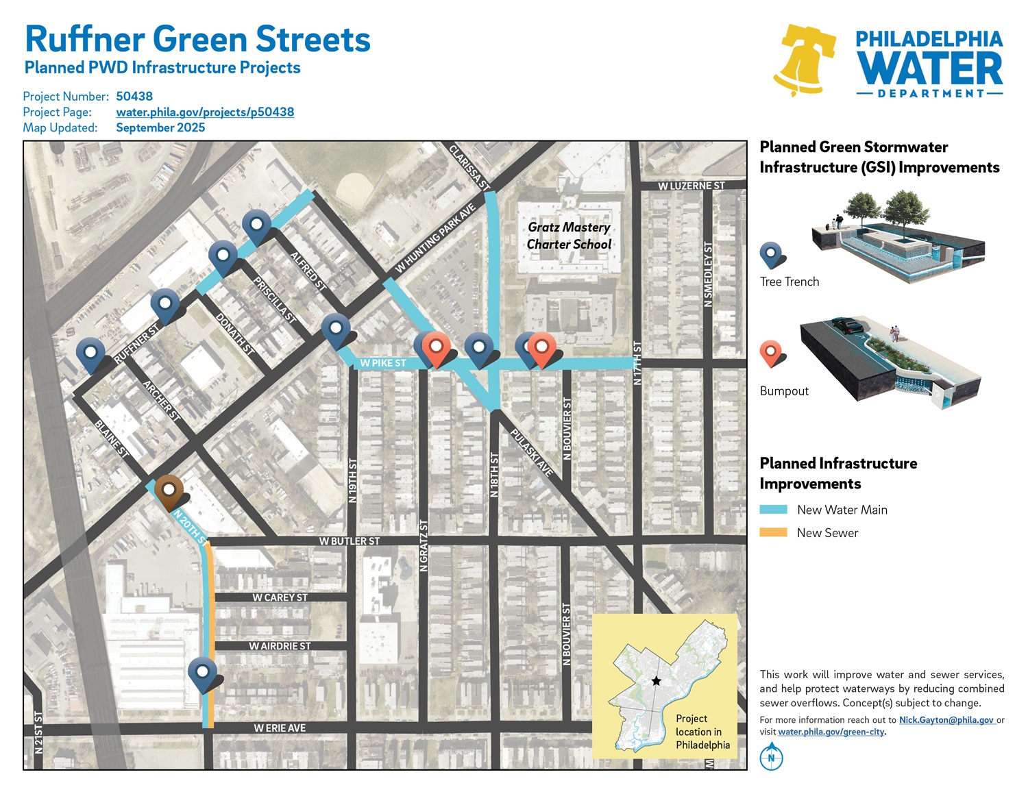 Project #50438 Ruffner Green Streets will implement green stormwater management infrastructure tools in the Tioga neighborhood in North Philadelphia.