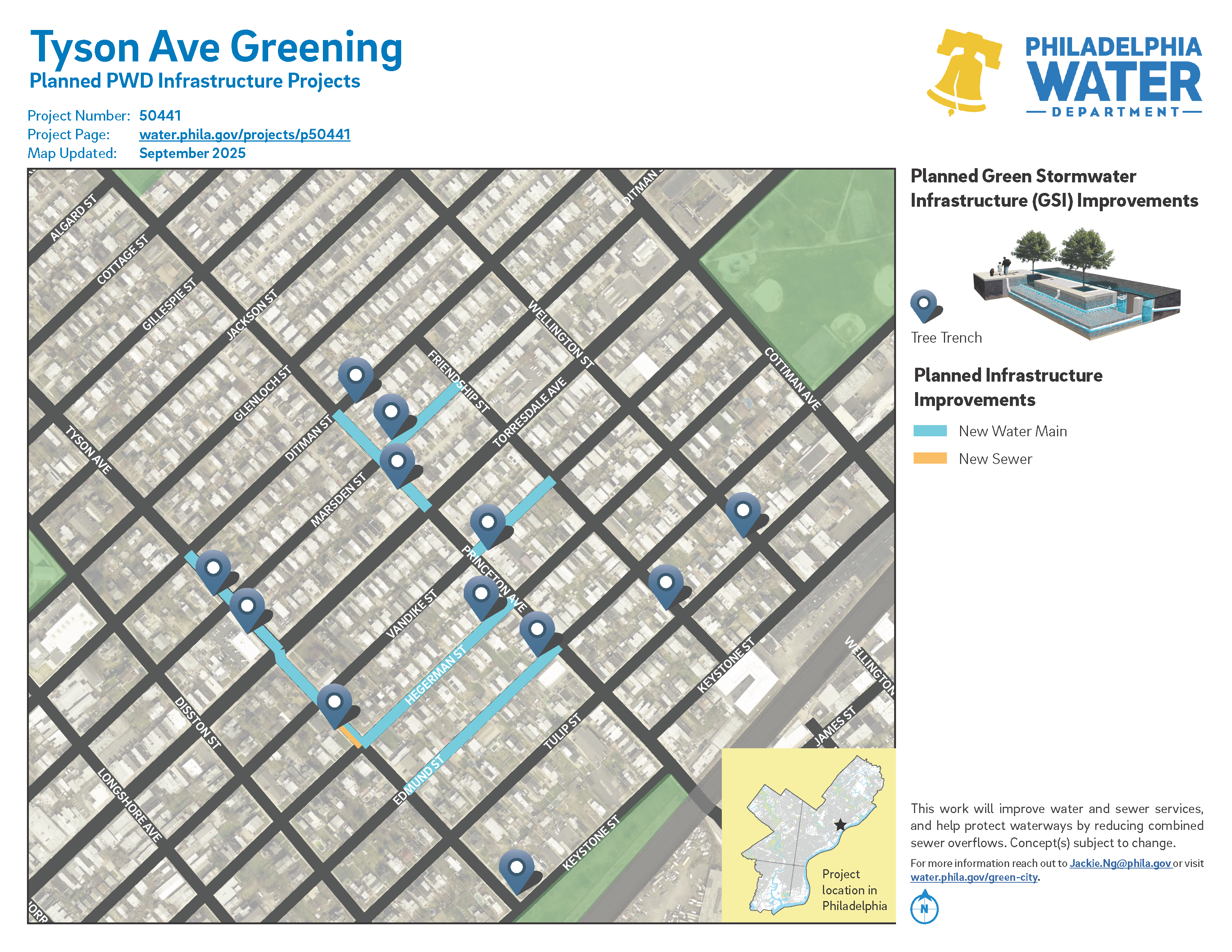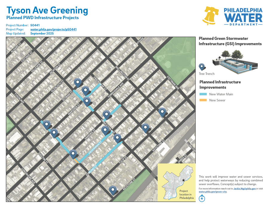 Project #50441 Tyson Ave Greening is a planned PWD project in the Tacony neighborhood.