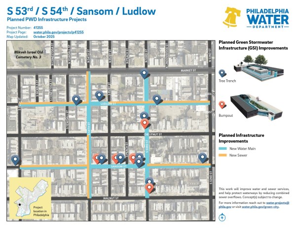 S 53rd / S 54th / Sansom / Ludlow Cobbs Creek, West Philadelphia ZIP Code: 19139 Distribution Water MainsDrinking WaterGreen StormwaterSewer #41255