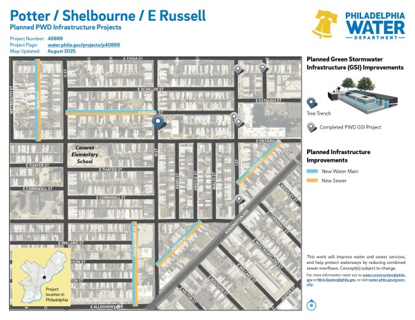 Potter / Shelbourne / E Russell Kensington, North Philadelphia ZIP Code: 19134 Distribution Water MainsGreenSewer #40899