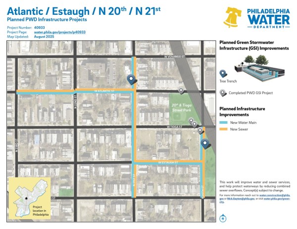N 11th / N Marvine / W Tioga / W Ontario Central North Philadelphia, Franklinville ZIP Code: 19140 Distribution Water MainsGreenSewer #40939