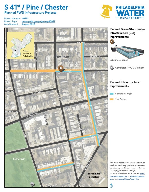 S 41st / Pine / Chester Spruce Hill, University City, West Philadelphia ZIP Code: 19104 Distribution Water MainsGreenSewer #40951