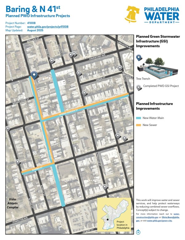 Baring & N 41st West Philadelphia, West Powelton ZIP Code: 19104 Distribution Water MainsGreenSewer #41008