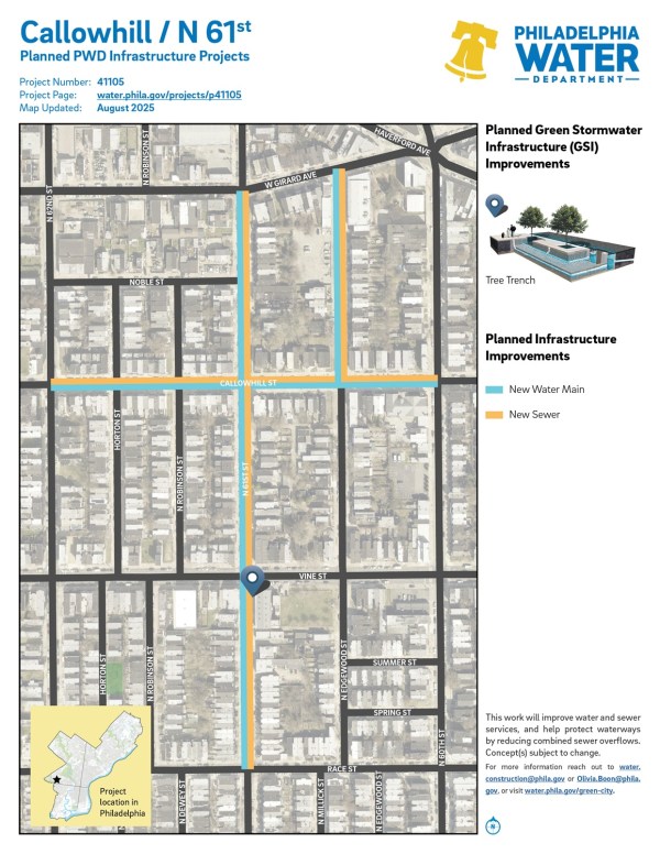 Callowhill / N 61st Haddington, West Philadelphia ZIP Codes: 19139, 19151 Distribution Water MainsGreenSewer #41105