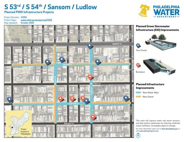 S 53rd / S 54th / Sansom / Ludlow Cobbs Creek, West Philadelphia ZIP Code: 19139 Distribution Water MainsDrinking WaterGreenSewer #41255
