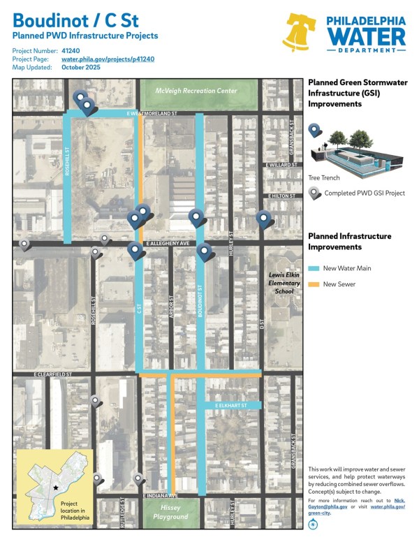 Boudinot / C St Kensington, North Philadelphia ZIP Code: 19134 Distribution Water MainsDrinking WaterGreen StormwaterSewer #41240